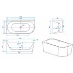 Belvit Halb-Freistehende Eckbadewanne Links Acryl Weiß glänzend mit Ablaufgarnitur & Click-Waste 170x78 cm