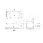 Aloni Halb-Freistehende Badewanne 170x80x60 Mittig Rundeck Acryl Weiß