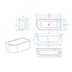 Aloni Halb-Freistehende Badewanne Eckwanne 180x80 Rechts Rundeck Acryl Weiß