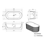 Belvit Freistehendes Bad Rondo Acryl mit Vertikalen Streifen in Matt Weiß – 170x80x58cm