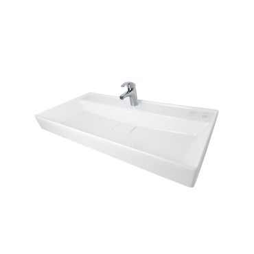 Belvit Keramik Waschbecken Aufsatz Wand 100x48x10 cm mit Überlauf Hahnloch
