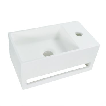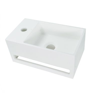 Solid Surface Waschbecken + Handtuchhalterung Hahnloch Rechts 36x20x16cm