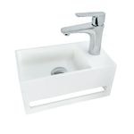 Solid Surface Waschbecken + Handtuchhalterung Hahnloch Rechts 36x20x16cm