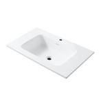 Waschbecken Wonda 80 cm Mattweiß mit Überlauf und Hahnloch schlankes Design Polyresin