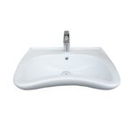 Belvit Behindertengerechtes Design Waschbecken 60 cm Weiß Keramik mit Hahnloch & Überlauf – Wandmontage Bad & WC