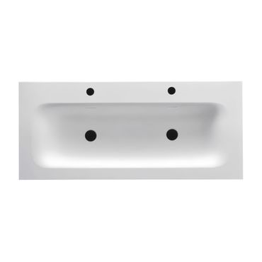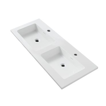 WONDA Doppelwaschbecken 120 cm mattweiß Polyresin mit Überlauf und 2 Hahnlöchern quadratisch schlank