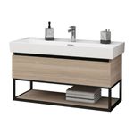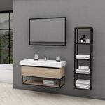 BELVIT Badmöbel Set mit Waschbecken 100 cm & Unterschrank 95 cm Nussoptik mit Metallgestell
