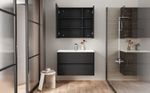 Spiegelschrank 80 x 70 cm mattschwarz – 4 Böden – grifflos – Softclose