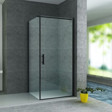 Aloni Drehflügeltür + Seitenwand 6mm + matt schwarzes Profil (90x90x190cm)