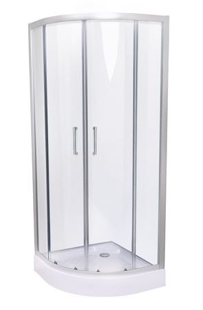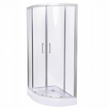 Belvit Eck-Duschkabine Viertelkreis mit Schiebetür und Duschwanne 80x80x200cm