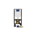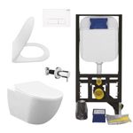 Creavit Hänge WC Set spülrandlos Weiß mit Edelstahl Taharet, Softclose WC Sitz und Vorwandelement Unterputz 3/6 L Spülkasten