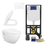 Creavit Hänge WC Set Weiß Keramik Wand WC mit Softclose Sitz und Unterputz Vorwandelement Spülkasten 3/6 L Komplettset