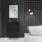 Belvit Waschbecken Set Mattschwarz 40 cm mit Unterschrank in Schwarzer Eiche platzsparend modern