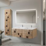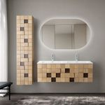 Waschbecken Set WONDA 120 cm Waschbecken mattweiß Polyresin mit Unterschrank helle Eiche