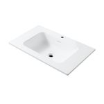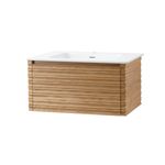 Waschbecken Set Wonda 80 cm Hahnloch mattweiß mit KAMELIA Unterschrank Nussbaum Softclose