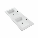 Waschbecken Set WONDA Doppelwaschbecken 120 cm 2 Hahnlöcher mattweiß mit KAMELIA Unterschrank Nussbaum