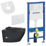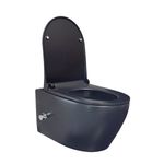 Belvit Wand WC Set spülrandlos Schwarz matt mit Taharet Bidet Warm-Kaltwasser Softclose passend für Geberit UP100
