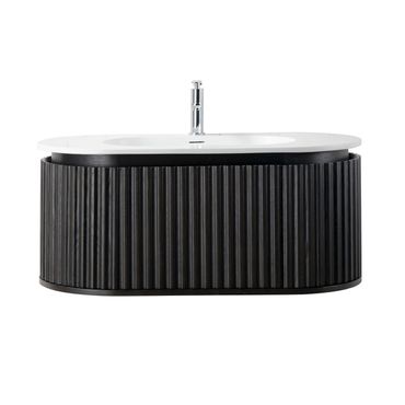 Waschbecken Set BEGONIA 100 cm Waschtisch mattweiß Kunstmarmor mit Unterschrank schwarze Eiche