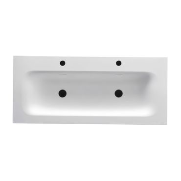 Waschbecken Set WONDA 120 cm mattweiß 2 Hahnlöcher mit Waschtischunterschrank Eiche Softclose
