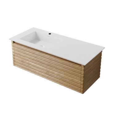 Optionen anzeigenWaschbecken Set BEGONIA 100 cm Waschtisch mattweiß Kunstmarmor mit Unterschrank Eiche Natur