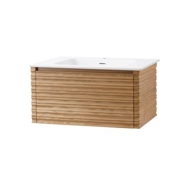 Waschbecken Set Wonda 80 cm mattweiß mit Kamelia Unterschrank Nussbaum Softclose grifflos
