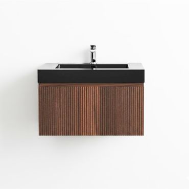 Waschbecken Set BELVIT 80 cm Mattschwarz mit Unterschrank Wenge Softclose Schublade
