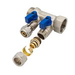 Verteiler mit 2 Abgängen Kugelhahn Blau MF-1” 2 x 16