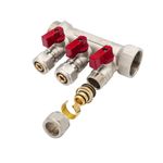 Verteiler mit 3 Abgängen Kugelhahn Rot MF-1” 3 x 16