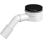 PREVEX Showerloc Ablaufgarnitur flach mit Siphon matt schwarz 90 mm mit Haarsieb 40 50 mm Auslass