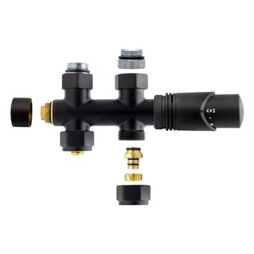 Belvit Design Heizkörperventil Thermostat Schwarz matt für Wand- und Bodenanschluss 1/2M x 16/2 M30