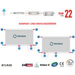 Planheizkörper Mittelanschluss Kompakt & Ventilheizkörper & Halter & Ventil NEU Typ 22 (Höhe x Breite) 500x800
