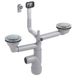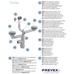 PREVEX Flexloc Siphon, platzsparend, universal, komplett mit 1,5 oder 2 Becken inkl. Ablaufgarnitur, Magnetabdeckung und 2 Überläufen für Küchenspülen/Spülbecken | aus recyceltem Kunststoff